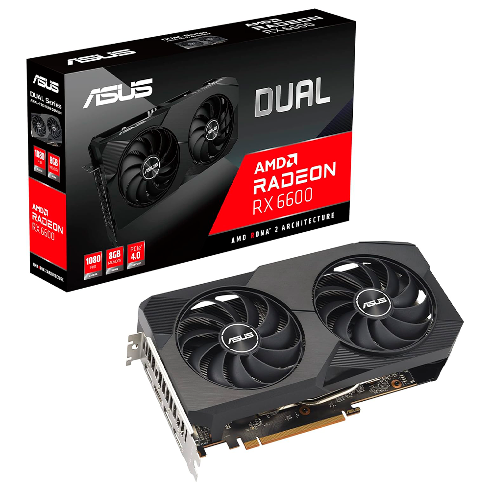 Tarjeta de Video Asus Dual Radeon RX 6600 V2, AMD Radeon RX6600, PCIe 4.0, 1 HDMI 2.1, 3 Puertos DisplayPort 1.4a, DUAL-RX6600-8G-V2, PRE-FIN