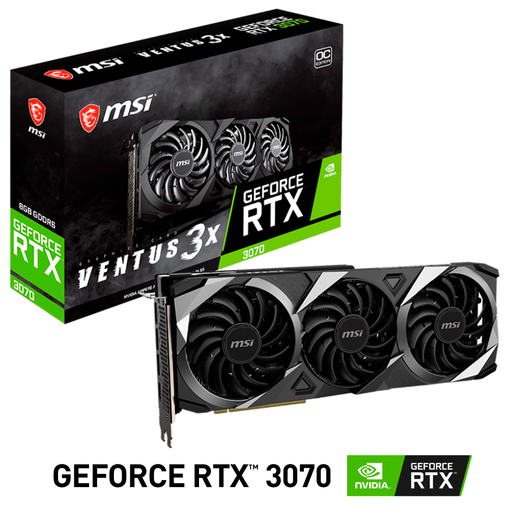 Home COMPONENTES TARJETAS DE VIDEO Tarjeta de Video Nvidia GeForce RTX 3070 8GB, MSI VENTUS 3X OC LHR, 912-V390-273, 3 AÑOS DE GARANTIA NACIONAL