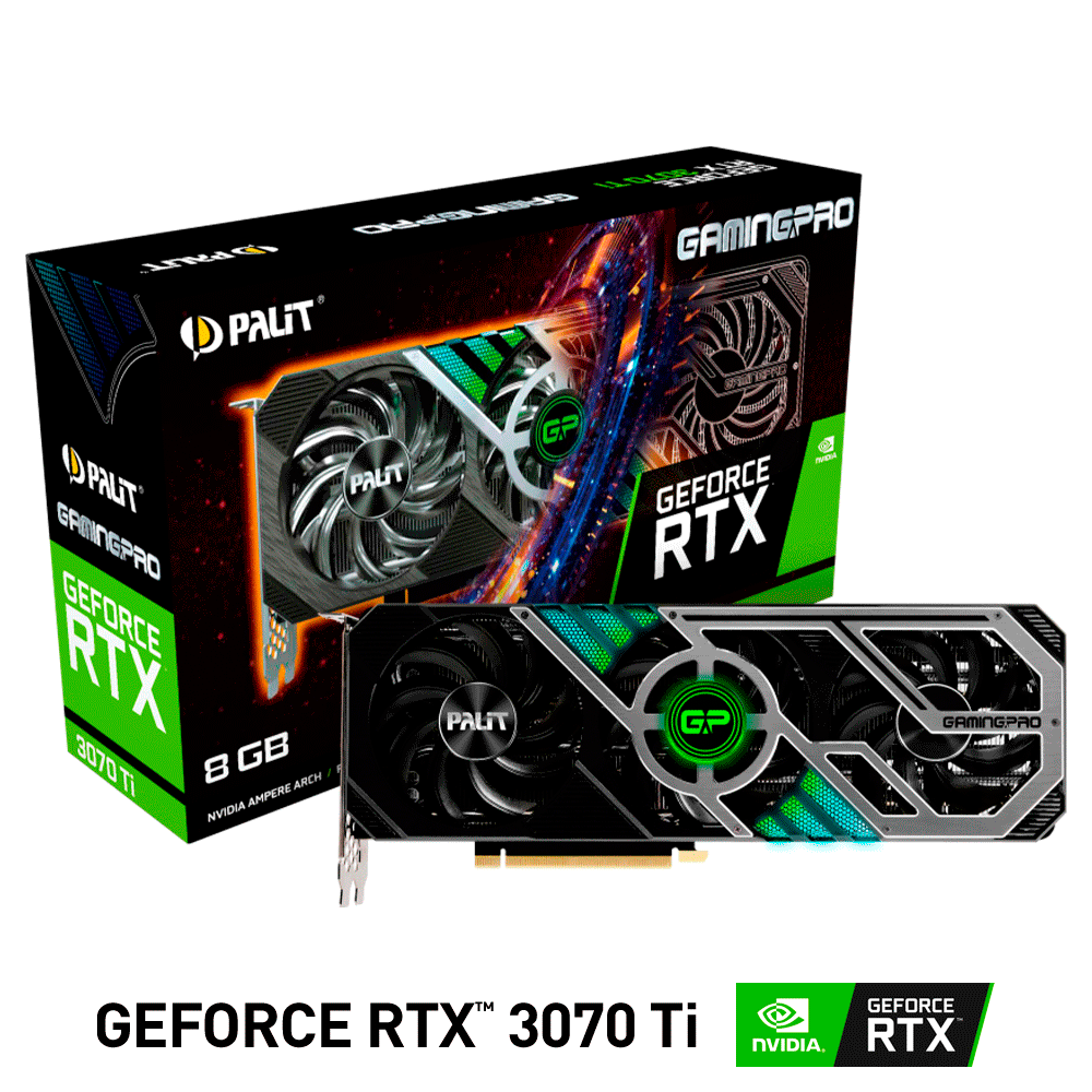 Home COMPONENTES TARJETAS DE VIDEO Tarjeta de Video Nvidia GeForce RTX 3070 TI, Palit Gaming PRO LHR, NED307T019P2-1046, 1 AÑO DE GARANTIA NACIONAL