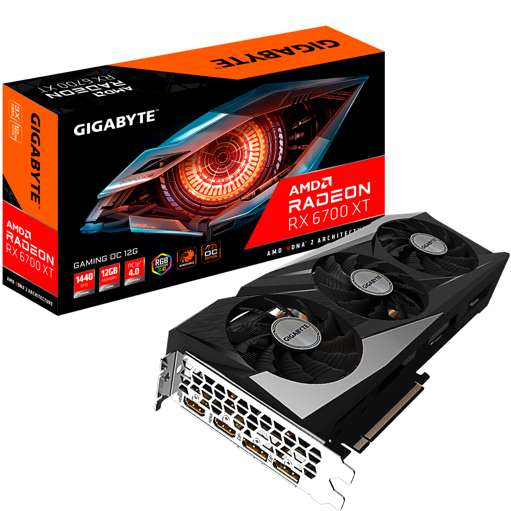 Home COMPONENTES TARJETAS DE VIDEO Tarjeta de video Radeon RX 6700 XT 12GB GDDR6, Gigabyte Gaming OC, HDMI, DP, GV-R67XTGAMING OC-12GD, 3 AÑOS DE GARANTIA NACIONAL