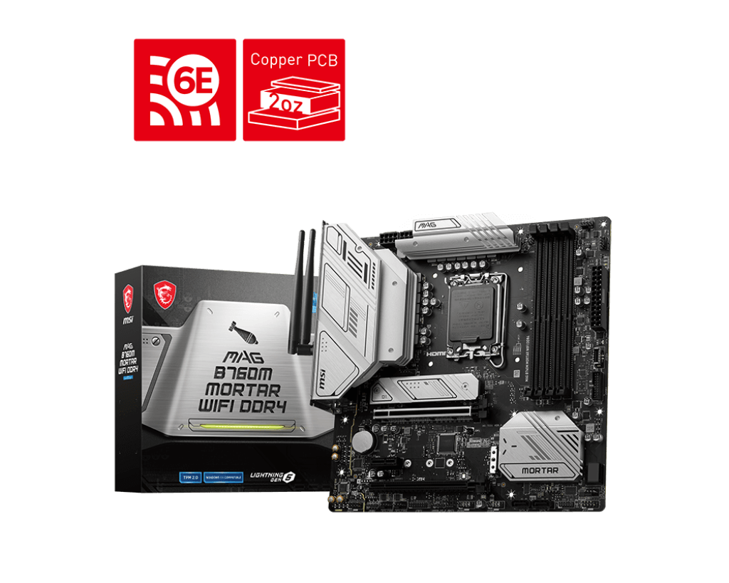 Tarjeta Madre MSI MAG B760M Mortar WiFi DDR4, Soporta procesadores Intel de 12ª/13ª generación, LGA 1700, PCIe 5.0, M.2, LAN de 2.5 Gbps, USB 3.2 Gen2, Wi-Fi 6E, mATX
