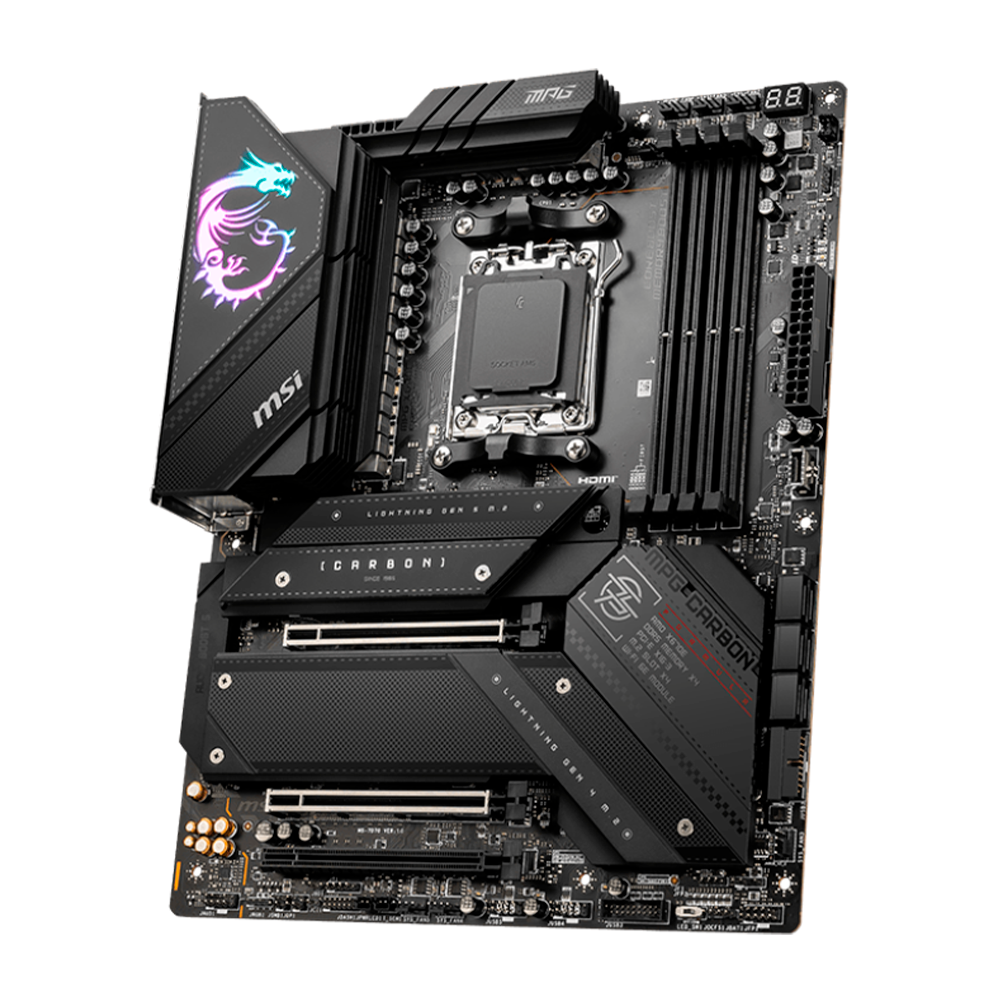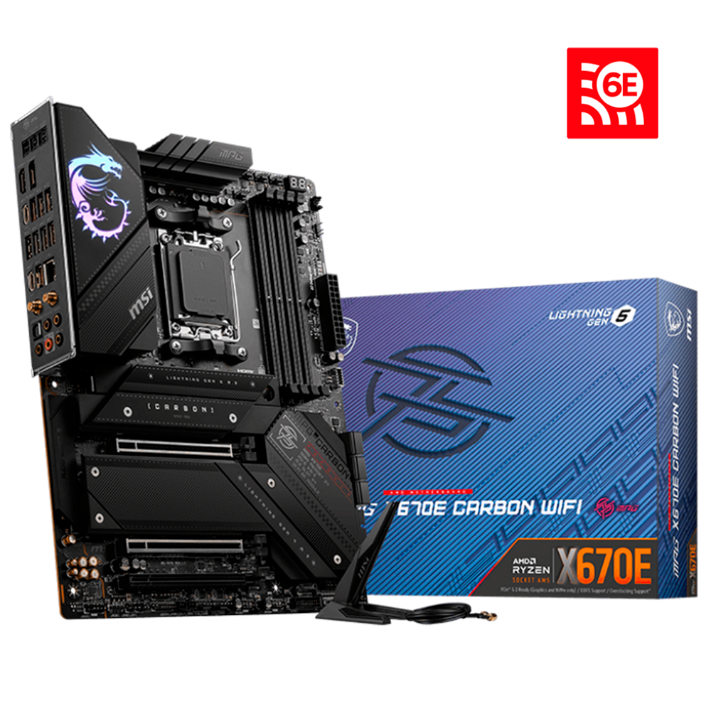 Home COMPONENTES TARJETAS MADRE Tarjeta Madre MSI MPG X670E Carbon WiFi, AMD Ryzen 8000/7000, AM5, DDR5, PCIe 5.0, SATA 6Gb/s, M.2, USB 3.2 Gen 2, Wi-Fi 6E, Bluetooth 5.3, MPG X670E CARBON WIFI/