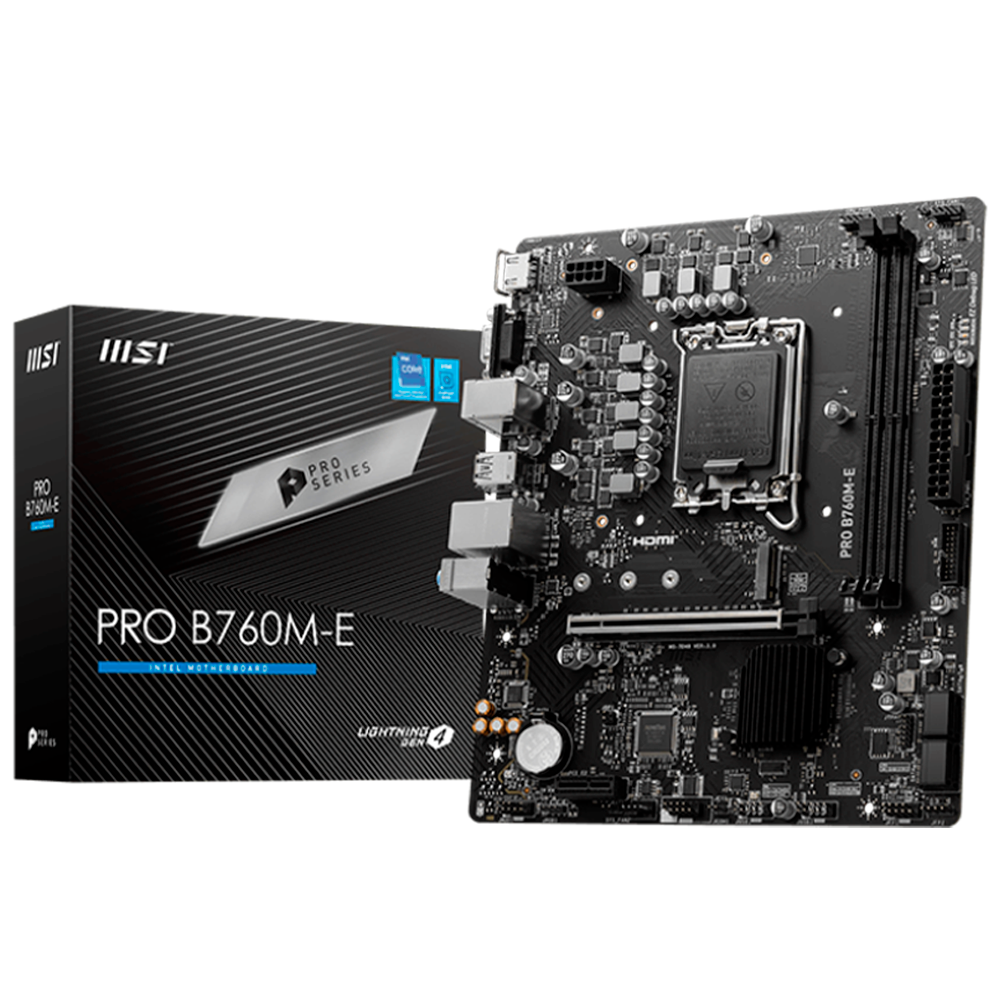 Home COMPONENTES TARJETAS MADRE Tarjeta Madre MSI PRO B760M-E, mATX, DDR5, LGA1700, Intel B760, HDMI, PRO B760M-E