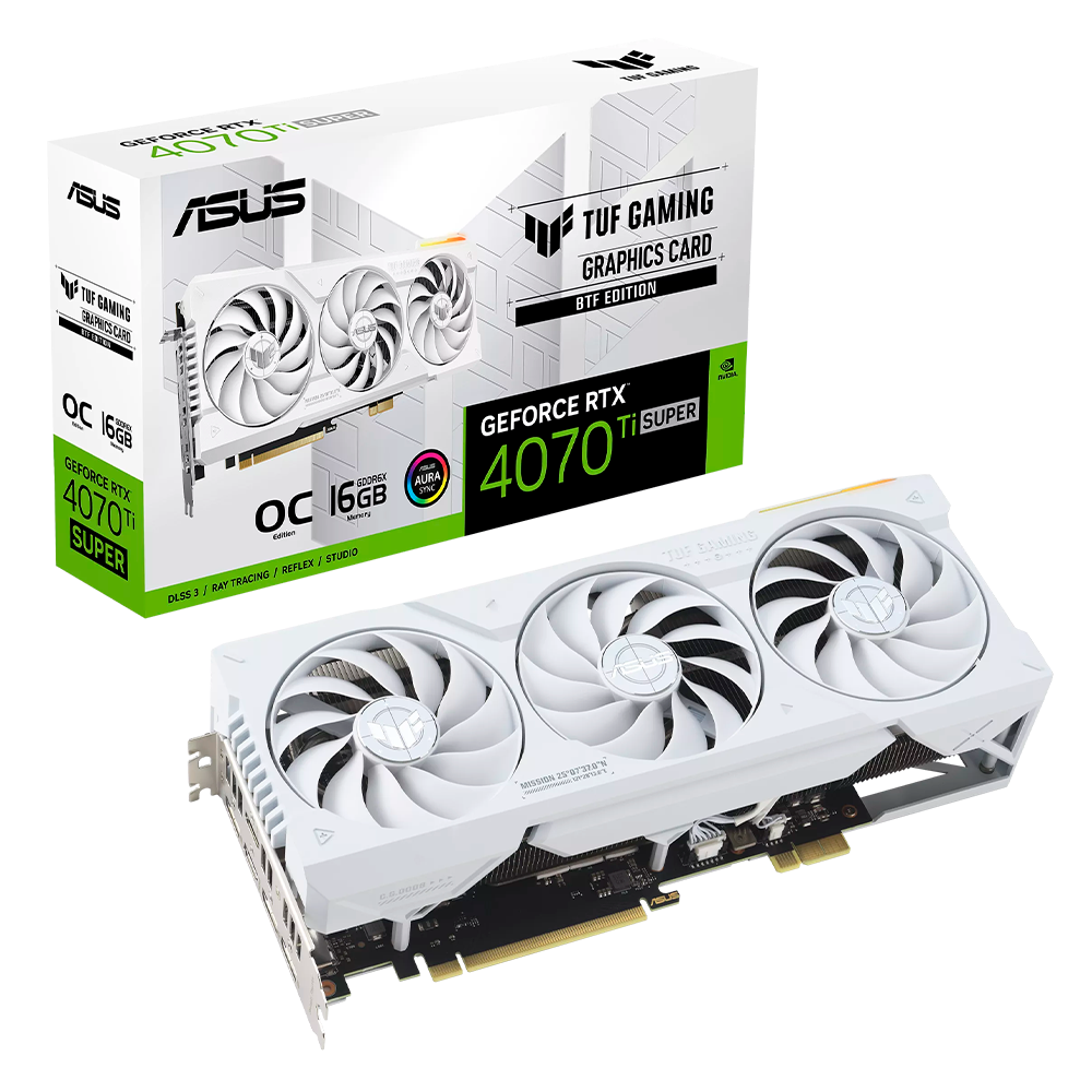 Home COMPONENTES TARJETAS DE VIDEO Tarjeta Video ASUS TUF Geforce RTX 4070Ti SUPER BTF White OC Edition 16GB GDDR6X, 16GB, 256-bit GDDR6X, TUF-RTX4070TIS-O16G-BTF-WHITE, Requiere Motherboard compatible con conector Advanced BTF*