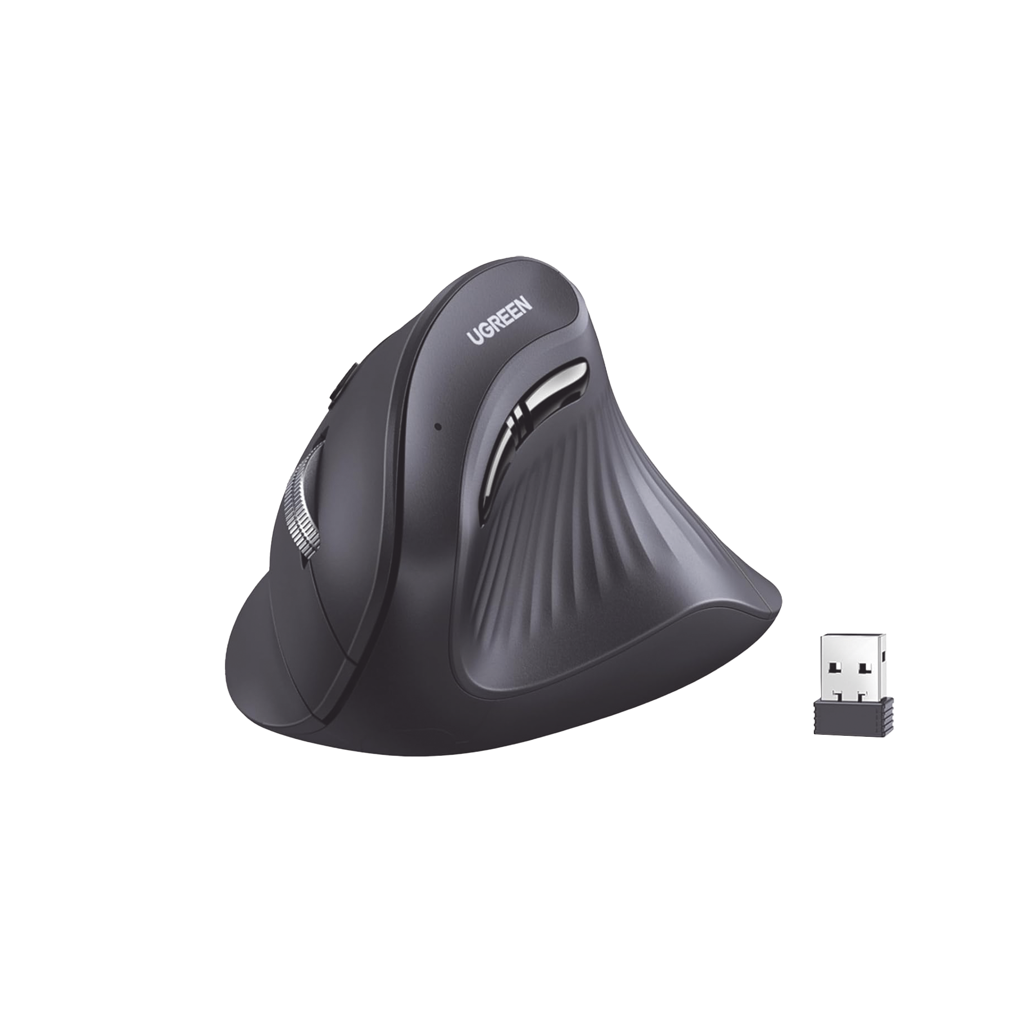 UGREEN 25444 Mouse Inalámbrico en Angulo Vertical | 2.4G & Bluetooth | Conecta 3 dispositivos Simultáneamente | 4 Niveles de DPI | Clic Silencioso | 5 botones Silenciosos | Soporta Win, Mac, Linux & Chrome.