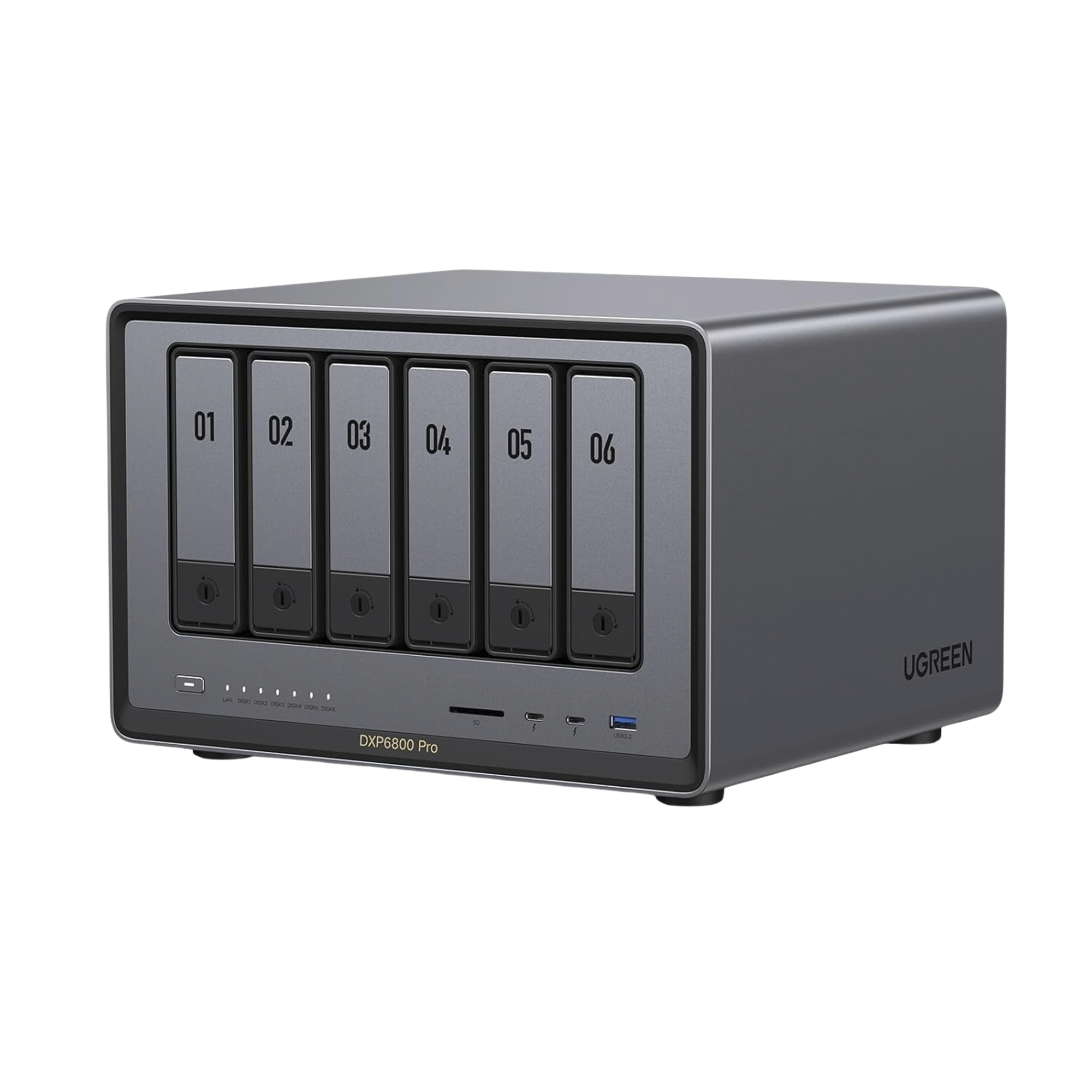 UGREEN 25898 NASync DXP6800 Pro | SO UGOS Pro | Intel® i5 1235u 10-Core™ | 6-Bahias (SATA) Hasta 144TB | 2* M.2 SSD Hasta 16TB | 8GB DDR5 (Exp. a 64GB) | 2 Thunderbolt™4 | 2*10GbE | 1*USB3.2 Gen2 | 2*USB 2.0 | 2*USB 3.2Gen2 | HDMI 2.1 8K | SD 4.0