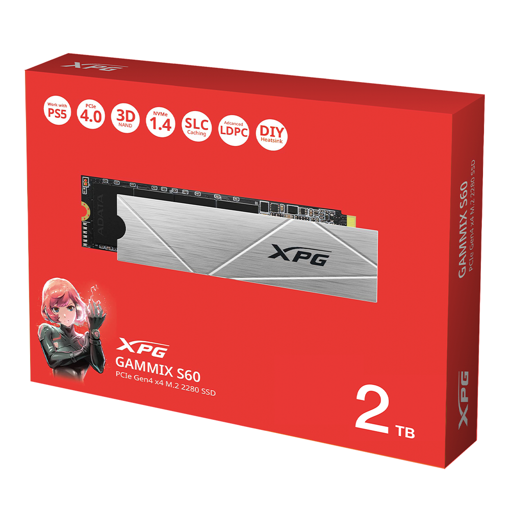 Unidad de Estado Sólido SSD XPG GAMMIX S60 NVMe, 2TB, PCI Express 4.0, M.2, AGAMMIXS60-2T-CS /MAX. 1 X CLIENTE