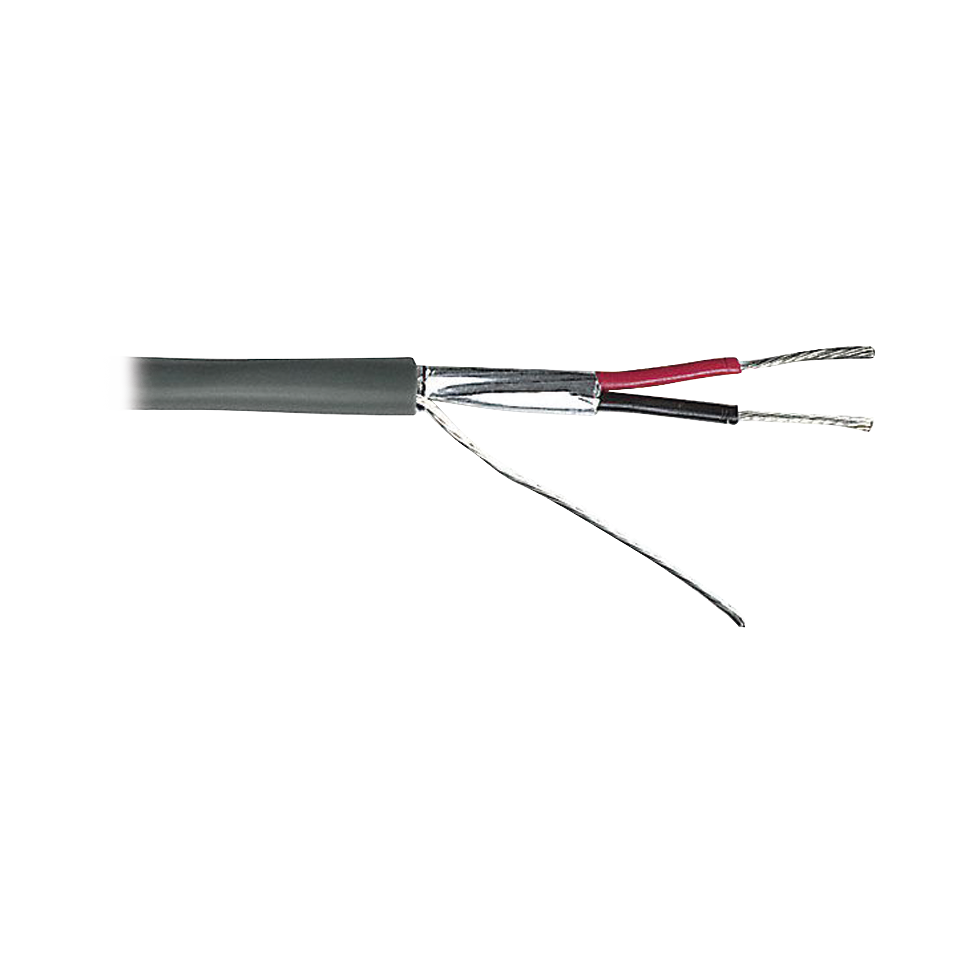 Cable de 2 conductores calibre 18 con forro Gris para aplicaciones en alarmas de intrusión, control de acceso, interfonos y TV Porteros.