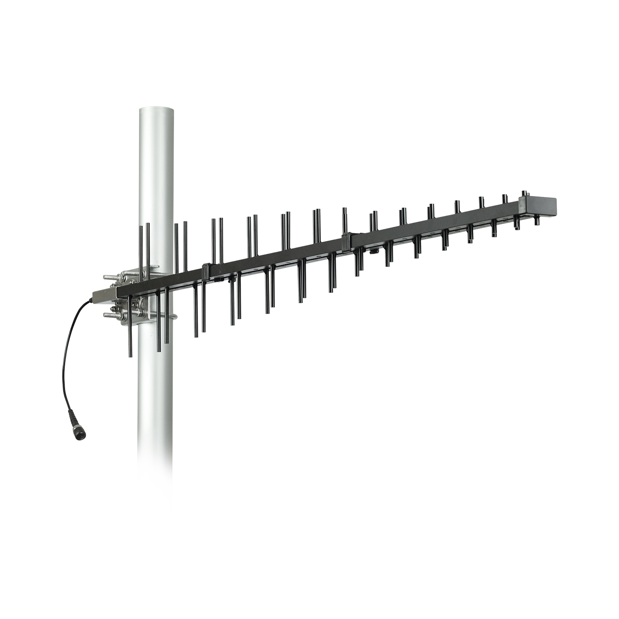 Versátil y potente, funciona en todas las bandas celulares del mundo para voz y datos; incluyendo LTE, CDMA, GSM, UMTS y AWS. Diseñada para adaptarse a una tubería o mástil de 1.5 » a 2″ de diámetro en el exterior de un edificio, la antena LPDA de alta ganancia se ajusta fácilmente para apuntar en la dirección de las torres celulares cercanas.