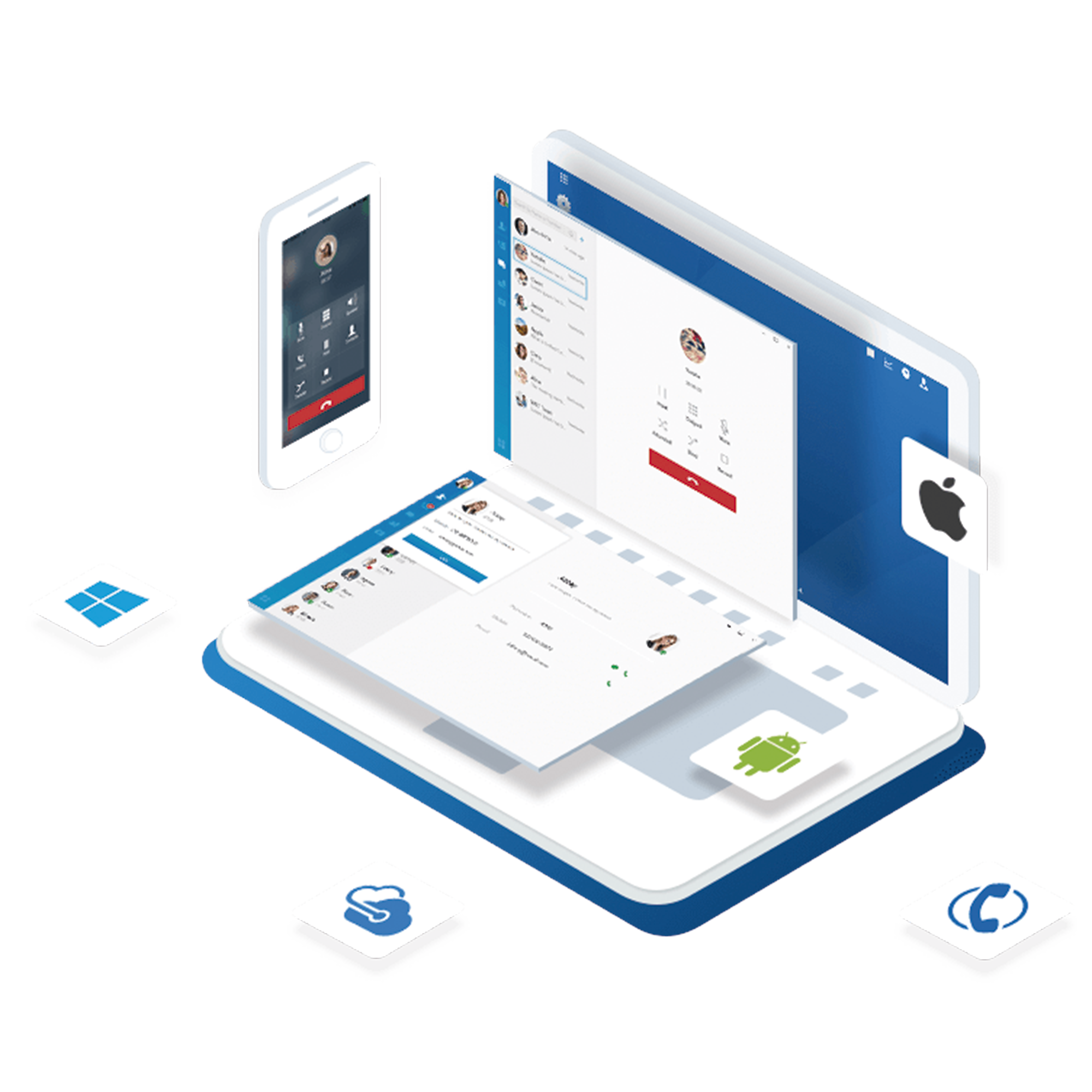 Para crear una plantilla flexible, solo necesita Linkus UC Clients en sus instalaciones, accesible desde navegador web, móvil o escritorio. Las conversaciones se sincronizan entre dispositivos, garantizando que no se pierda información importante. Incluye presencia, chat, agendas telefónicas, integración CRM y más.